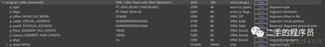 这个段描述的就是,在 elf 被重定位之后,将虚拟位置 5D660 且大小为 10656 字节的区域的权限改成只读的。