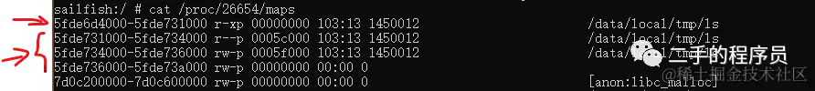 修改完之后,我们再运行 /data/local/tmp/ls 程序,查看其 maps 文件信息: