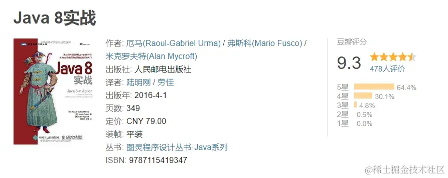 - 江湖流传Java版本任你发,我用Java 8,可以知道java 8的地位了。这本书全面系统地讲述了Java8给Java语言带来的改变,例子也很生动,值得一读~