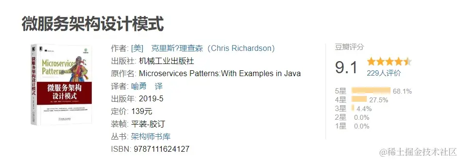 - 44 个架构设计模式,理论联系实际开发经验,并且涉及涉及接口设计、数据库设计、架构设计等各个方面,很不错的一本书~