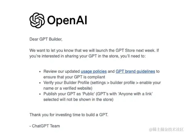 另外 OpenAI 发布了关于在该商城内分享个人 GPT 的注意事项: