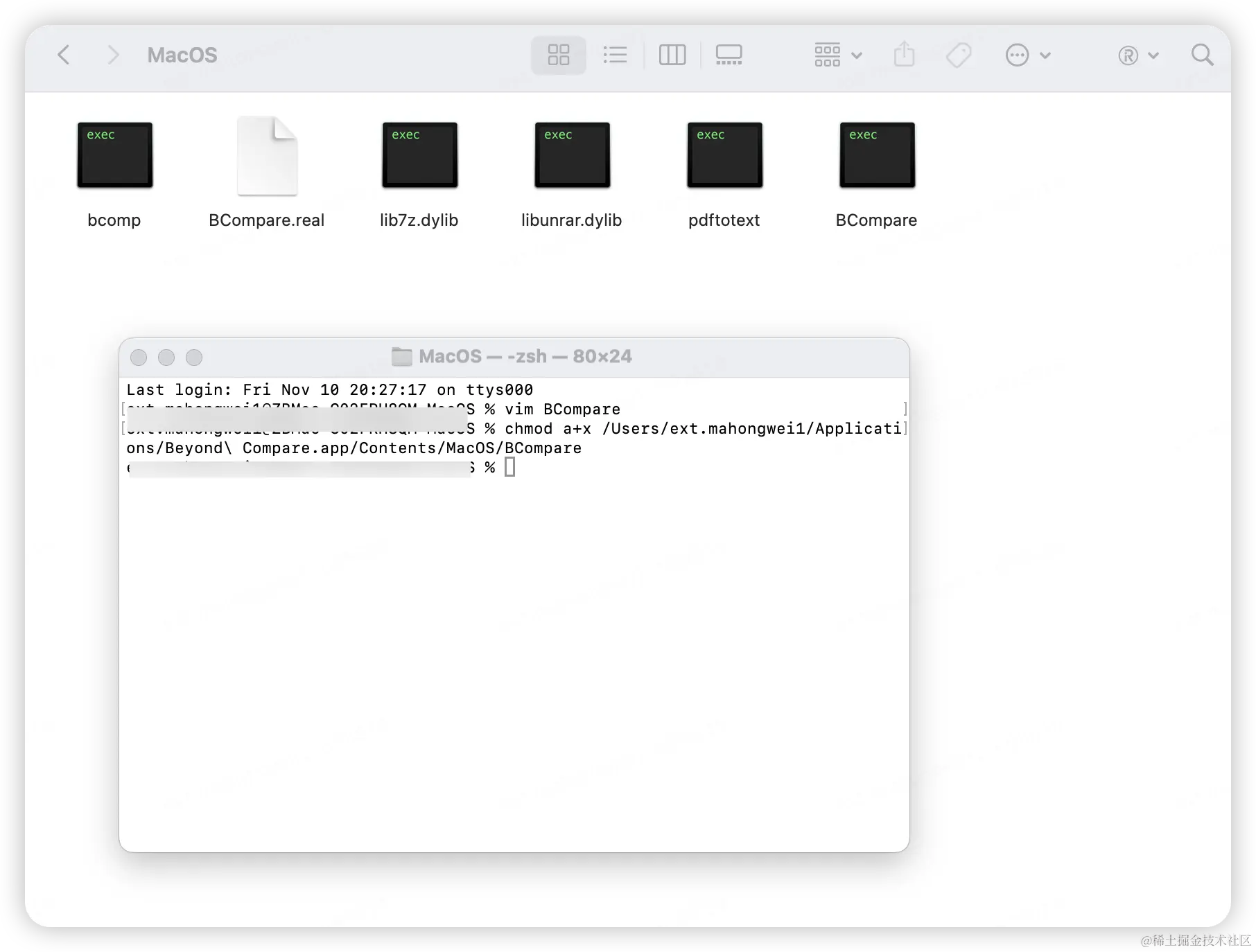 chmod a+x /Users/{用户名}/Applications/Beyond\ Compare.app/Contents/MacOS/BCompare