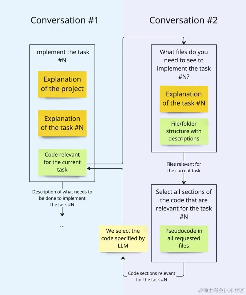 - 上下文回溯 上下文回溯背后的思想相对简单 - 对于解决每个开发任务,第一条消息到LLM的上下文大小必须相对一样。例如,在实现开发任务#5时,第一条LLM消息的上下文大小必须和任务#50的第一条消息的上下文大小大体相同。因此,每个任务完成后,需要回溯到第一条消息。 对于GPT Pilot来说,要任务#5和#50相同,它必须理解到目前为止的代码,以及所有已编写代码背后的业务上下文,这样,它才能创建针对当前任务的新代码,而不是重写整个应用。 但本质上,当GPT Pilot创建代码时,它会为它编写的每个代码块制作伪代码,以及创建的每个文件和文件夹的描述。所以,当我们需要实现每个任务的时候,在一个单独的对话中,我们向LLM展示最新的文件夹/文件结构,它只选择与当前任务相关的代码,然后,我们将只添加该代码到有同样任务需要的实际执行任务的原始对话。