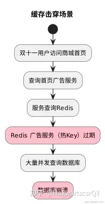 举个例子,比如双十一活动中,大量用户同时会查询首页的某个广告服务,正常查询流程中,我们的服务会直接在缓存中进行查询,查到了之后,返回给用户。