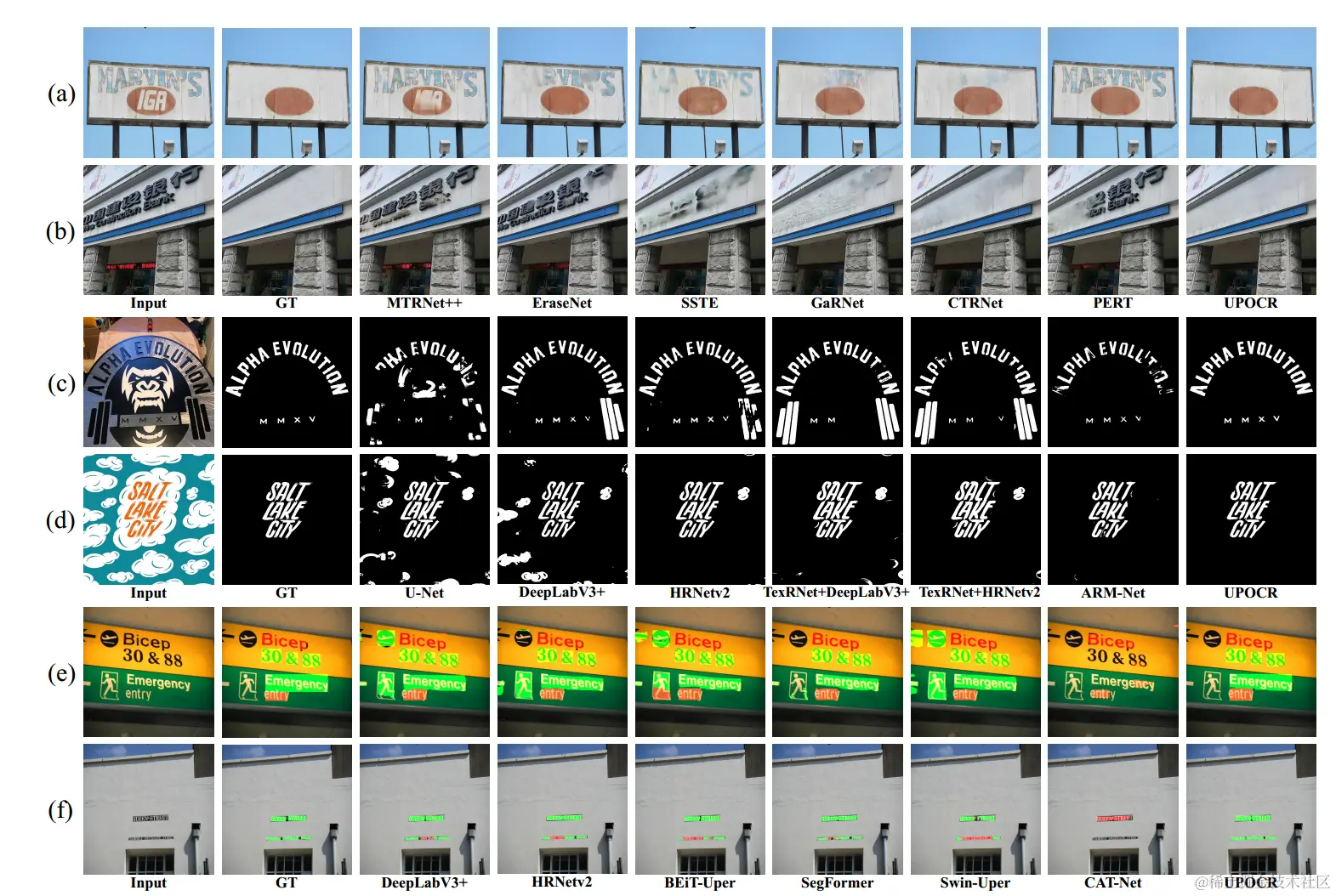 综上所述,UPOCR提出了一种简单而有效的统一像素级OCR接口,其采用基于ViT的编码器-解码器,通过可学习的任务提示来处理各种任务,在文本去除、文本分割和篡改文本检测等任务上都表现出极高的性能。