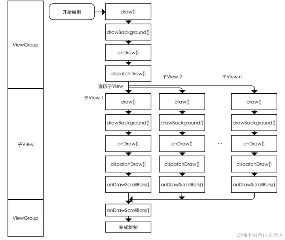 draw过程会调用onDraw(Canvas canvas)方法,然后就是dispatchDraw(Canvas canvas)方法, dispatchDraw()主要是分发给子组件进行绘制