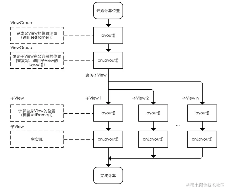 // 2. 若视图的大小 & 位置发生变化会重新确定该View所有的子View在父容器的位置:onLayout()
