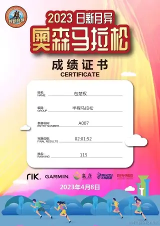 我从 2.25 开始备战,从 5 公里开始,每周跑一次,每次比上一次增加 2.5 公里左右,最终达到 21 公里。练了一次 21 公里后,参加比赛。最终成绩还不错,用时 2:01:52。定一个 2024 年的小目标——半马破 2 小时。