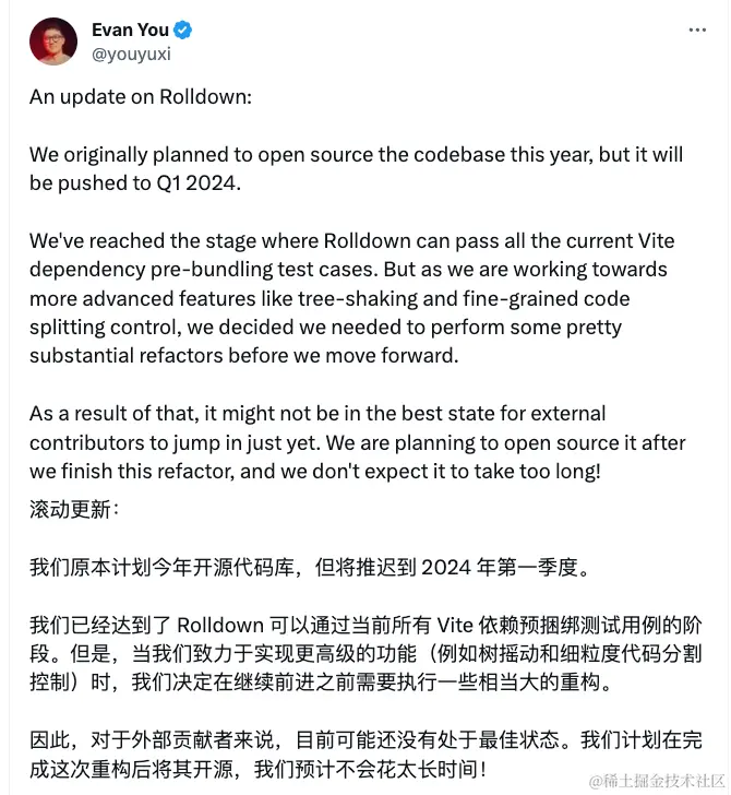 - Rolldown 计划24年Q1 开源