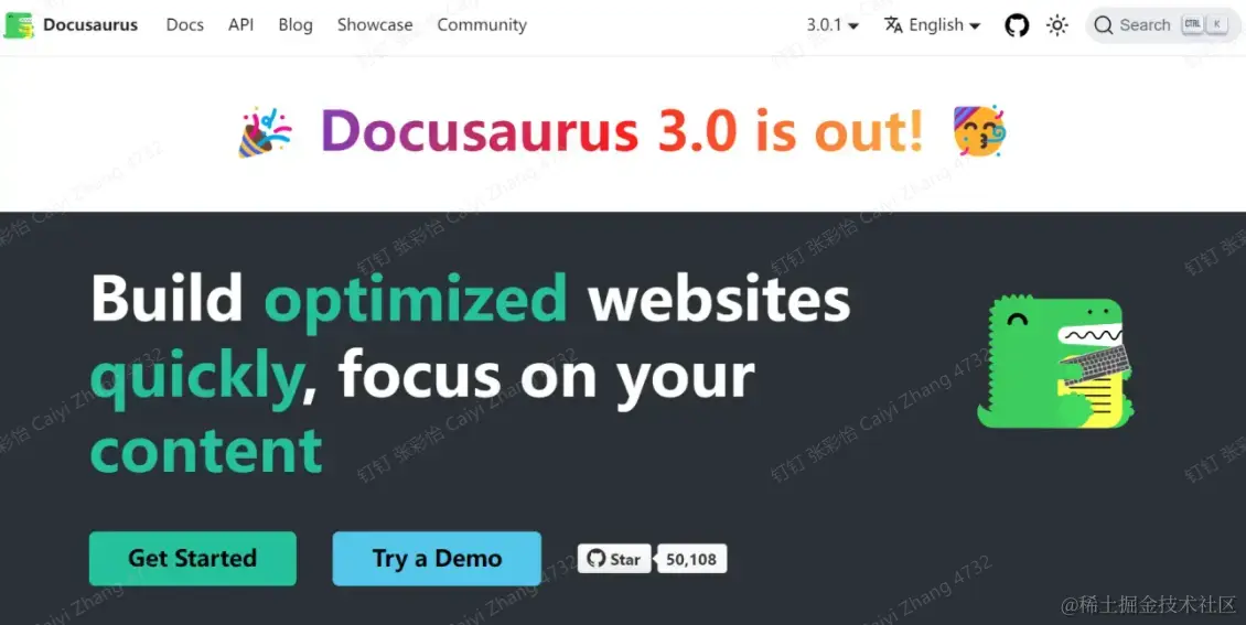 Docusaurus 是一个开源的文档生成器,可以帮助用户快速构建和维护技术文档网站。它基于 React 技术构建,使得开发者可以更加灵活地定制文档网站的样式和功能。其支持多种文档格式导入导出,如 Markdown、MDX 等格式的文档可以轻松地导入并呈现为网页形式。同时,它还支持自动生成导航结构和页面布局,使得开发者可以更加高效地组织和呈现技术文档。