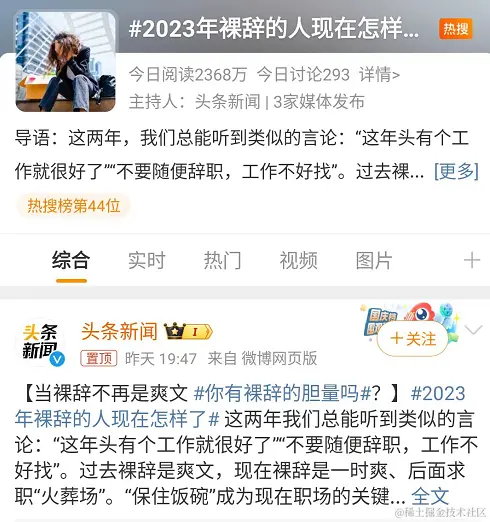 今早看到关于裸辞的热搜,果然是寒冬了,大家都在焦虑啊。