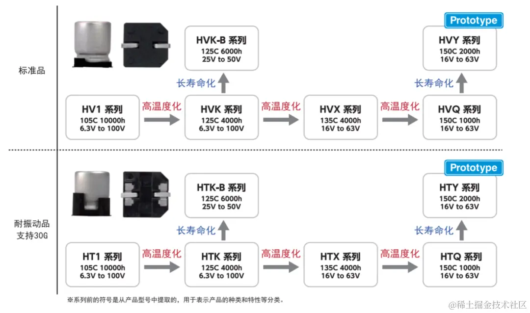 太阳诱电导电性高分子混合铝电解电容器,最适合需要大容量和高耐压的车载装置和产业设备。电解质使用导电性高分子和电解液,兼具高性能和高可靠性,满足客户需求。