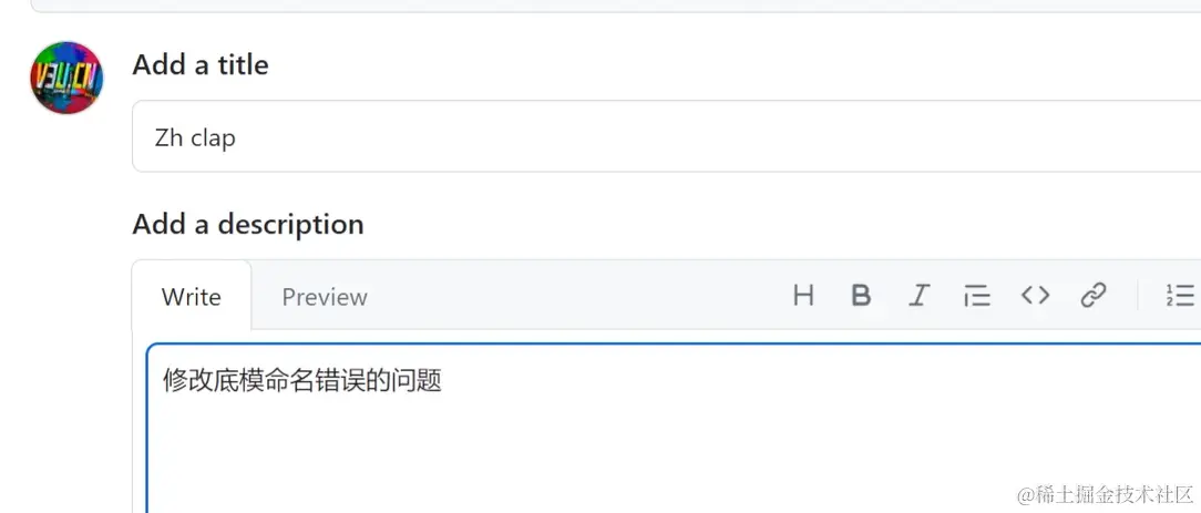 提交PR的时候,也可以描述一下此次pull request的具体理由: