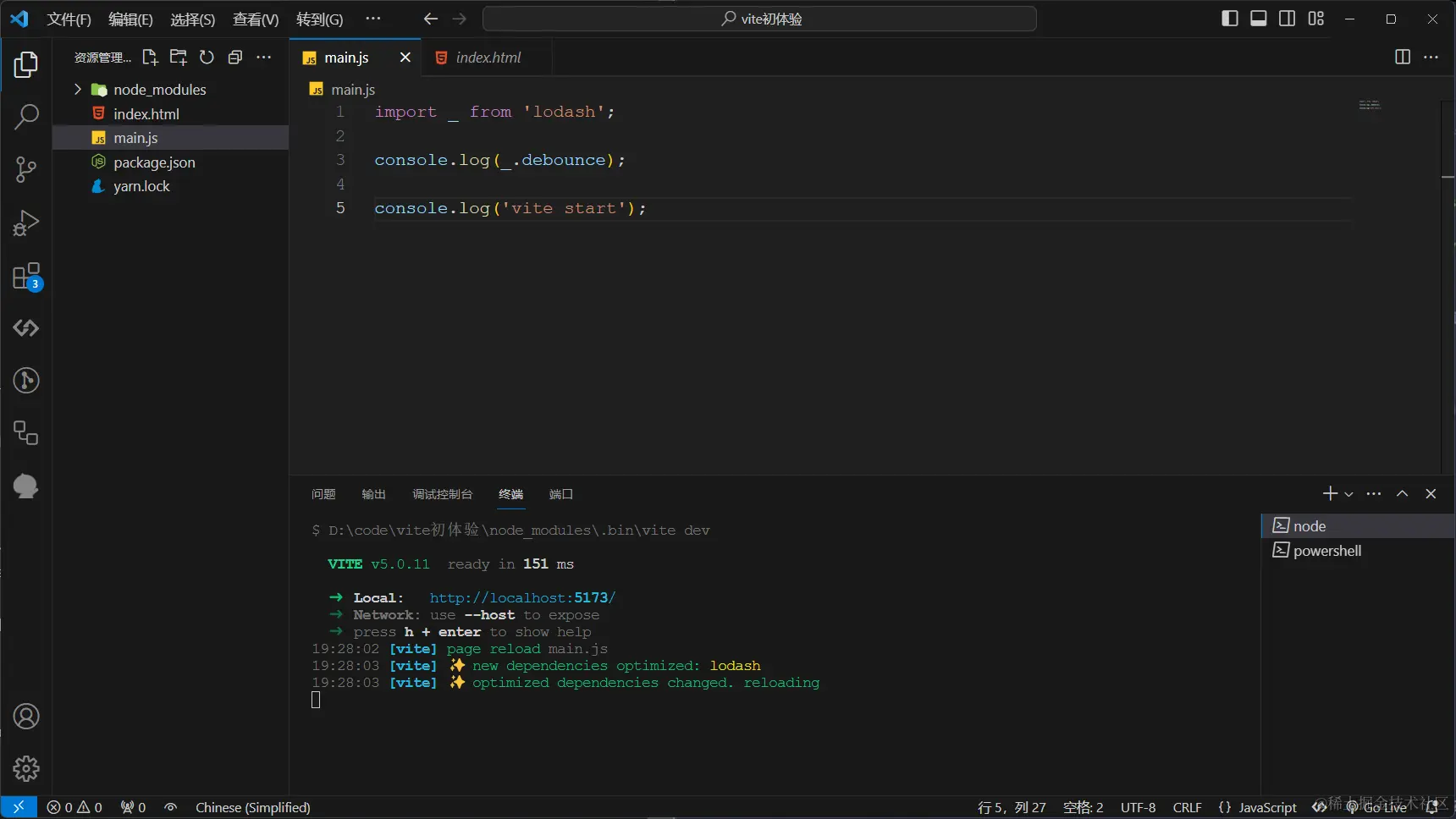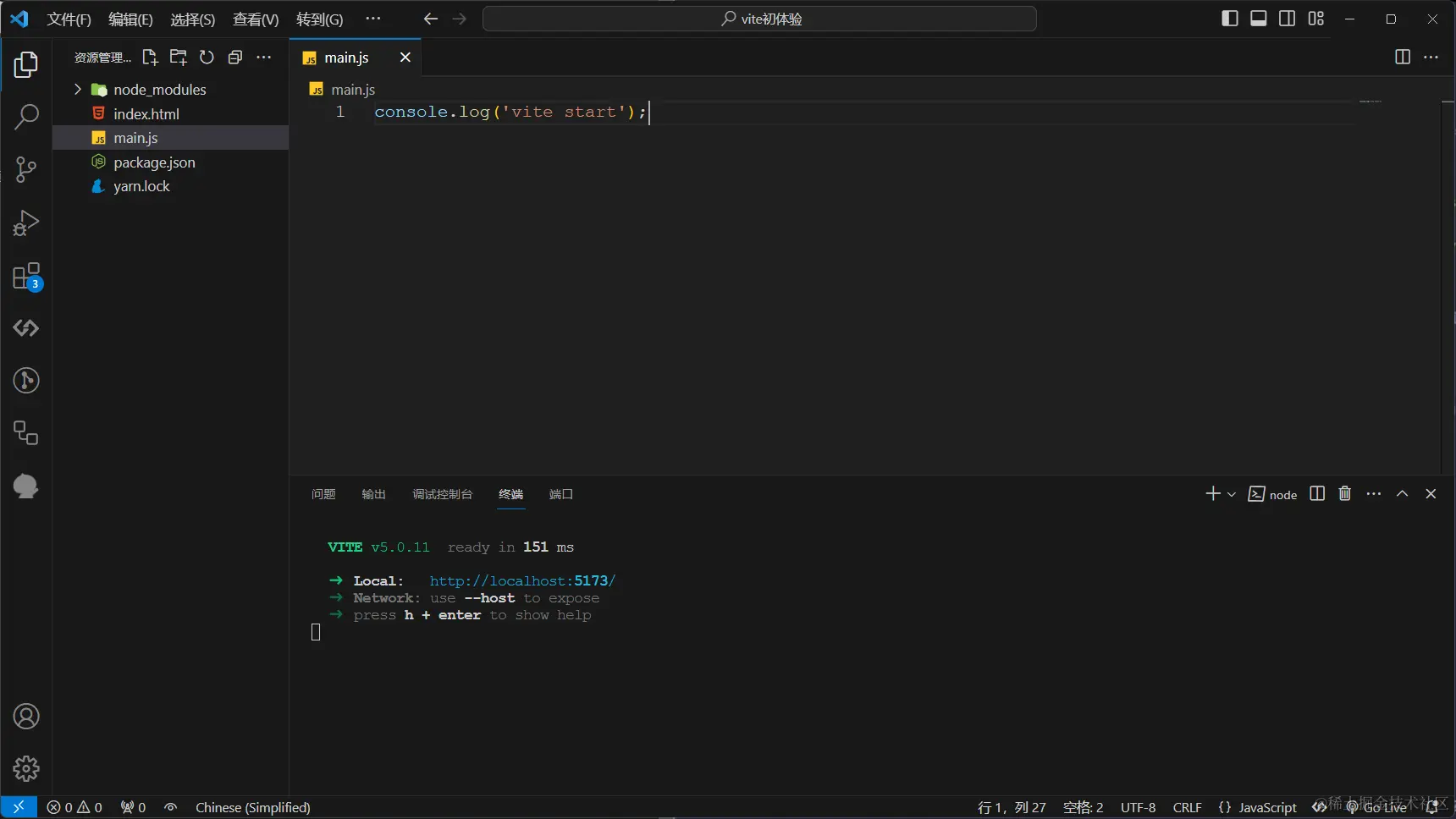 - 上一篇中我们手动创建了一个Vite初体验的项目如下所示