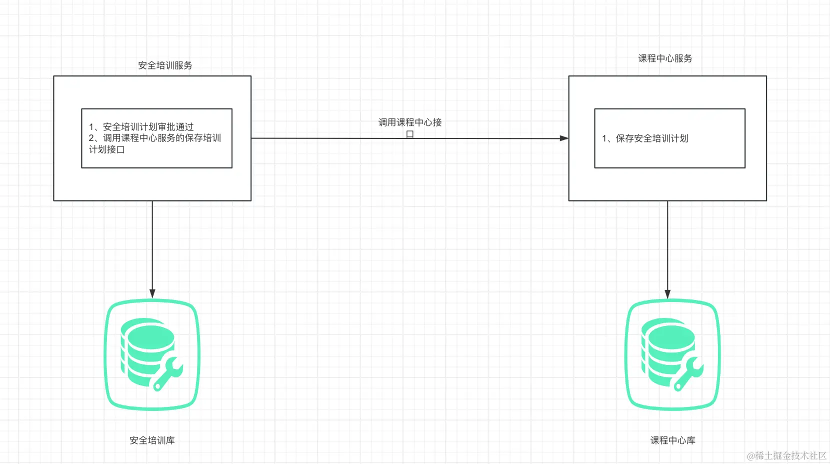 我们有一个服务叫做安全培训服务,这个服务需要在安全培训计划审批通过的时候推送到第三方的课程中心。大致的流程如下: