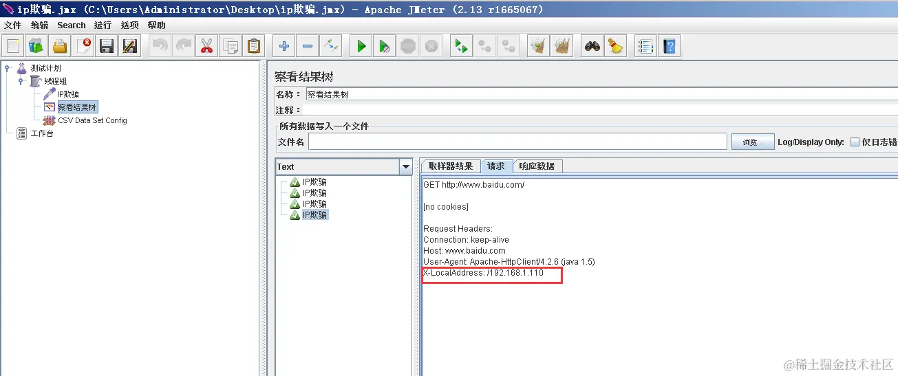 针对每个http都要设置一遍,jmeter在每个并发线程开始时从文件中取一个IP值;