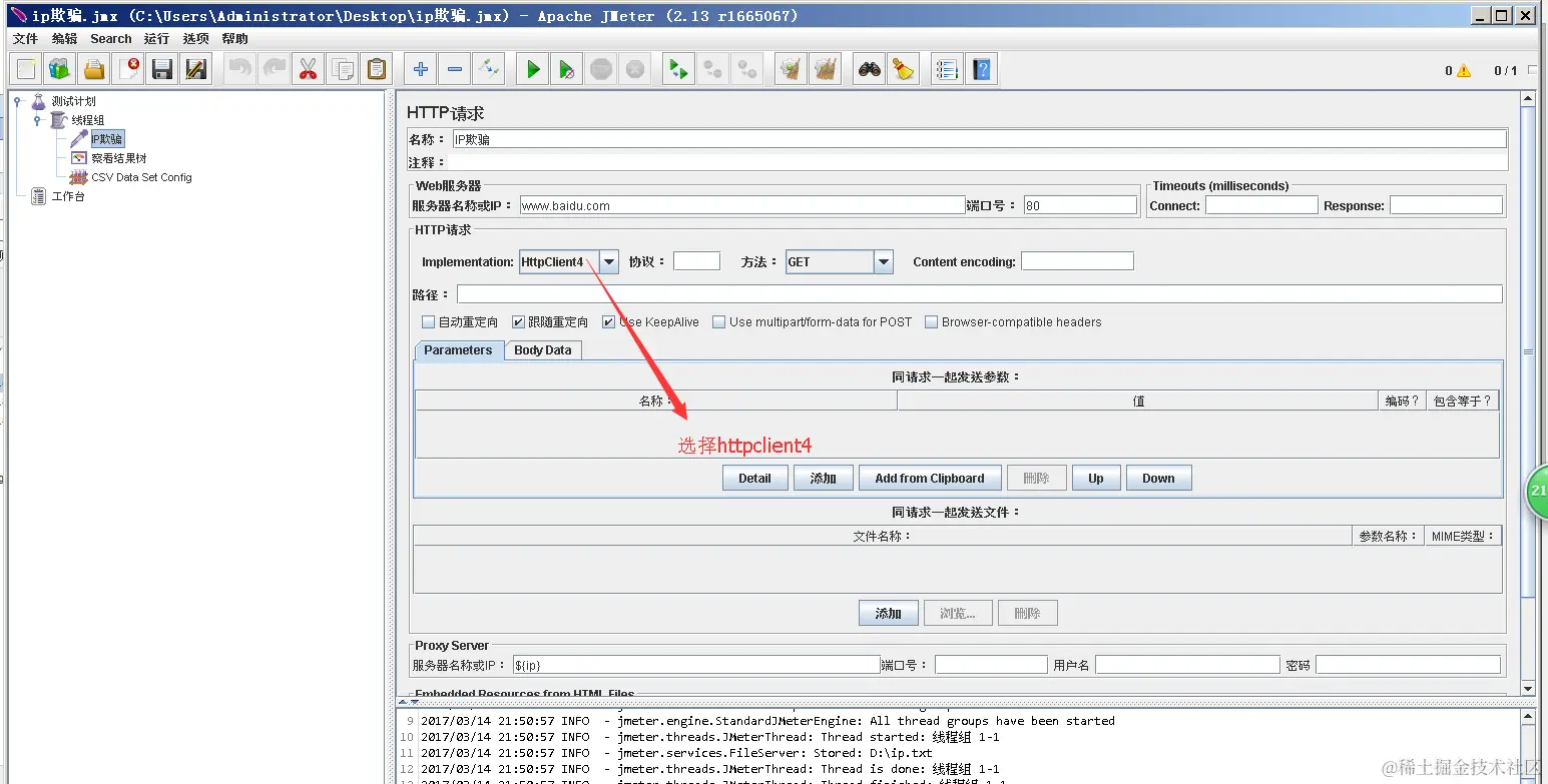 2、在jmeter测试计划中添加配置元件 并配置IP参数