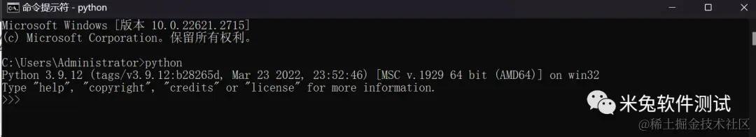 cmd命令行输入python,下图表示已经正常安装python 3.9.12版本****