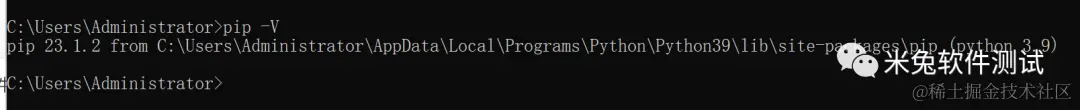 cmd命令行输入pip -V,下图表示 pip装包工具已经安装好了