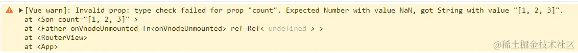 通过测试我们发现,虽然在子组件的模板中, count 是可以正常被渲染成一个数组的,但是浏览器会在控制台抛出警告。