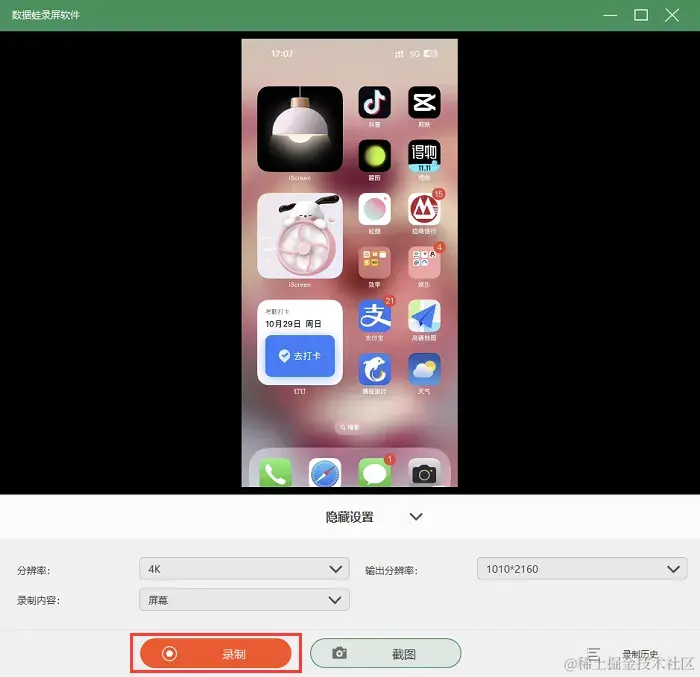 第2步:在 “录手机” 页面中,根据设备类型选择iOS录制,连接我们的苹果手机,根据官方提示将手机投屏到电脑上,调整好录屏设置后,就可以开始录制屏幕了。
