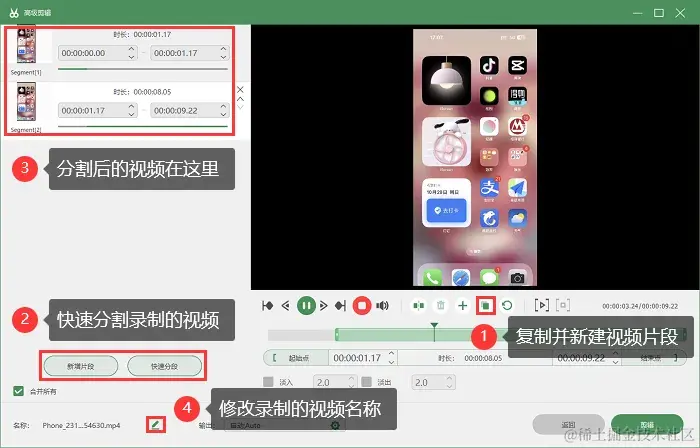 它还支持多种输出格式,如WMV、AVI、F4V等,录制的视频清晰度高,还可以添加音效,让你的作品更加生动有趣。下面是录制苹果手机的操作步骤: