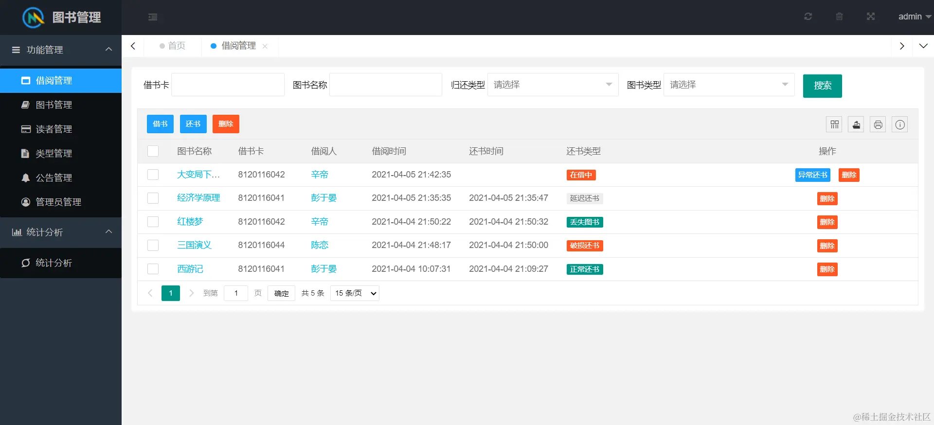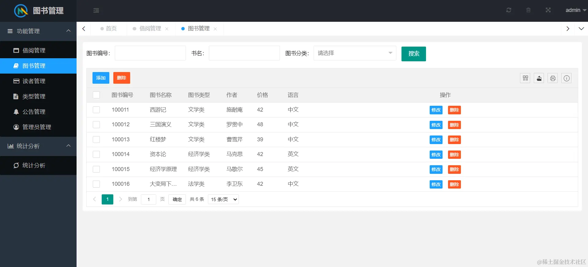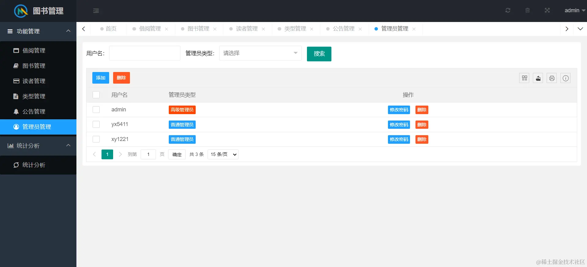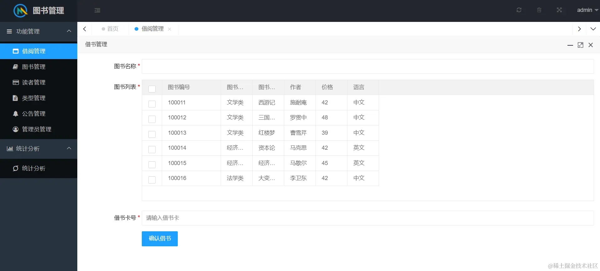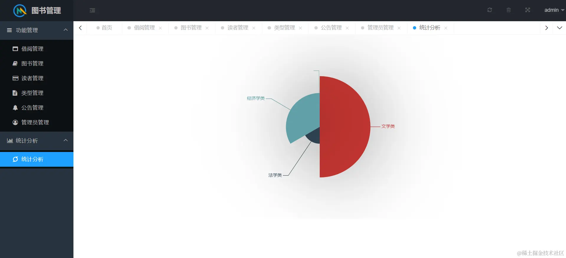 网站功能包含系统用户管理、图书管理、用户管理、借阅管理、公告管理、读者管理、统计分析等模块。