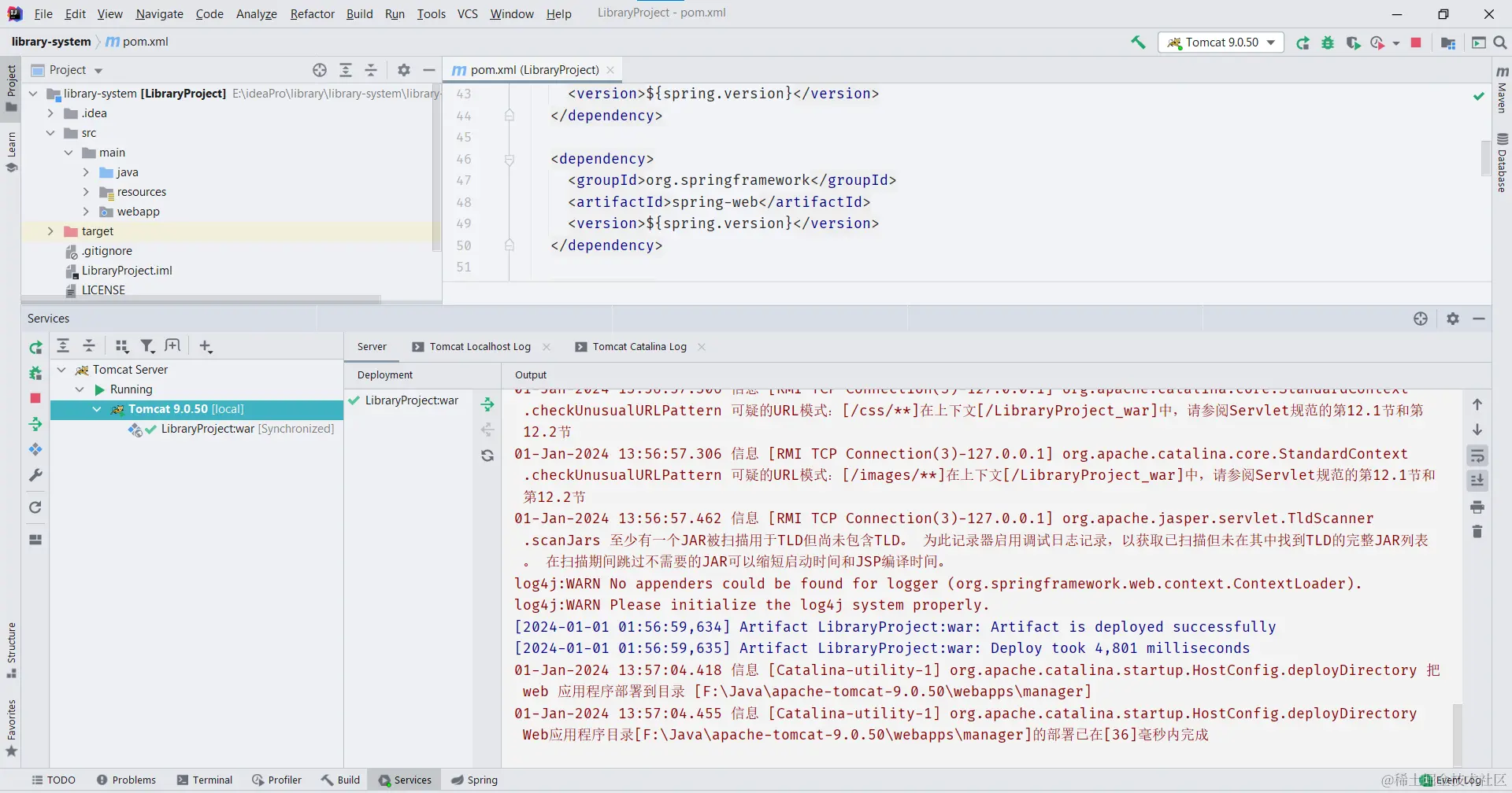 然后等待下载完依赖即可。咱们可以趁着这个时候新建数据库library,因为他的数据库配置文件里面写的是这个数据库名称,因此咱们新建一个与他的配置一样的数据库即可。打开Navicat Premium 12,新建数据库