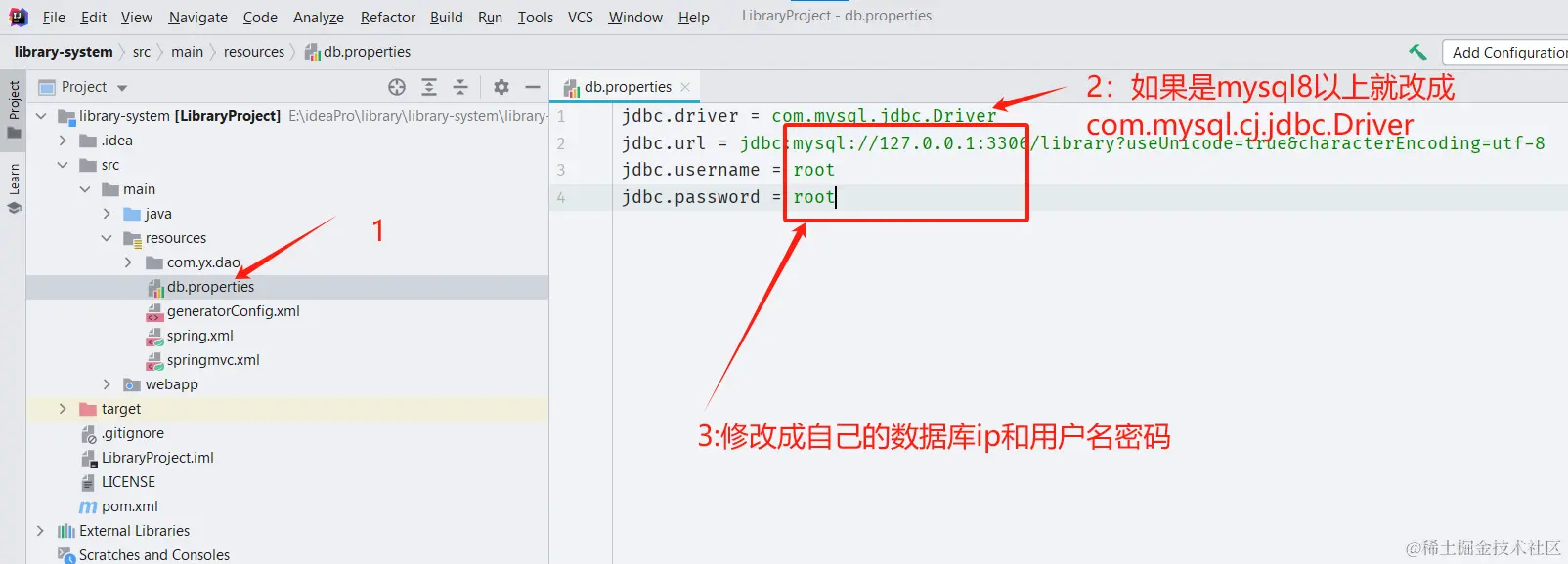 接下来咱进入idea打开db.properties配置一下数据库信息:
