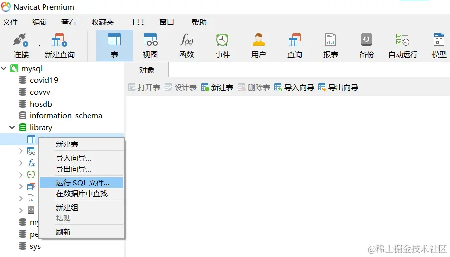 接下来运行sql脚本,也就是咱们解压之后的library.sql文件