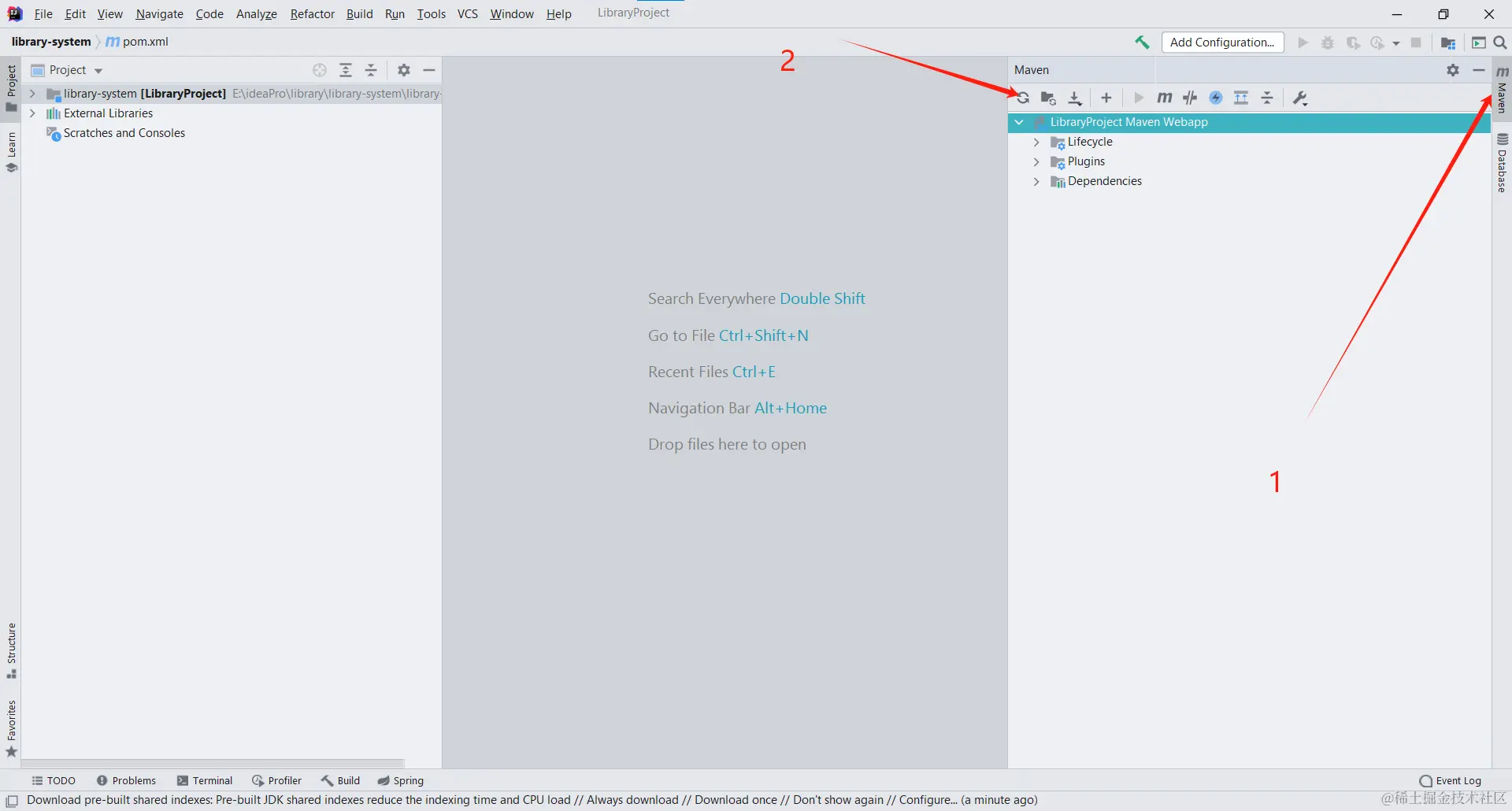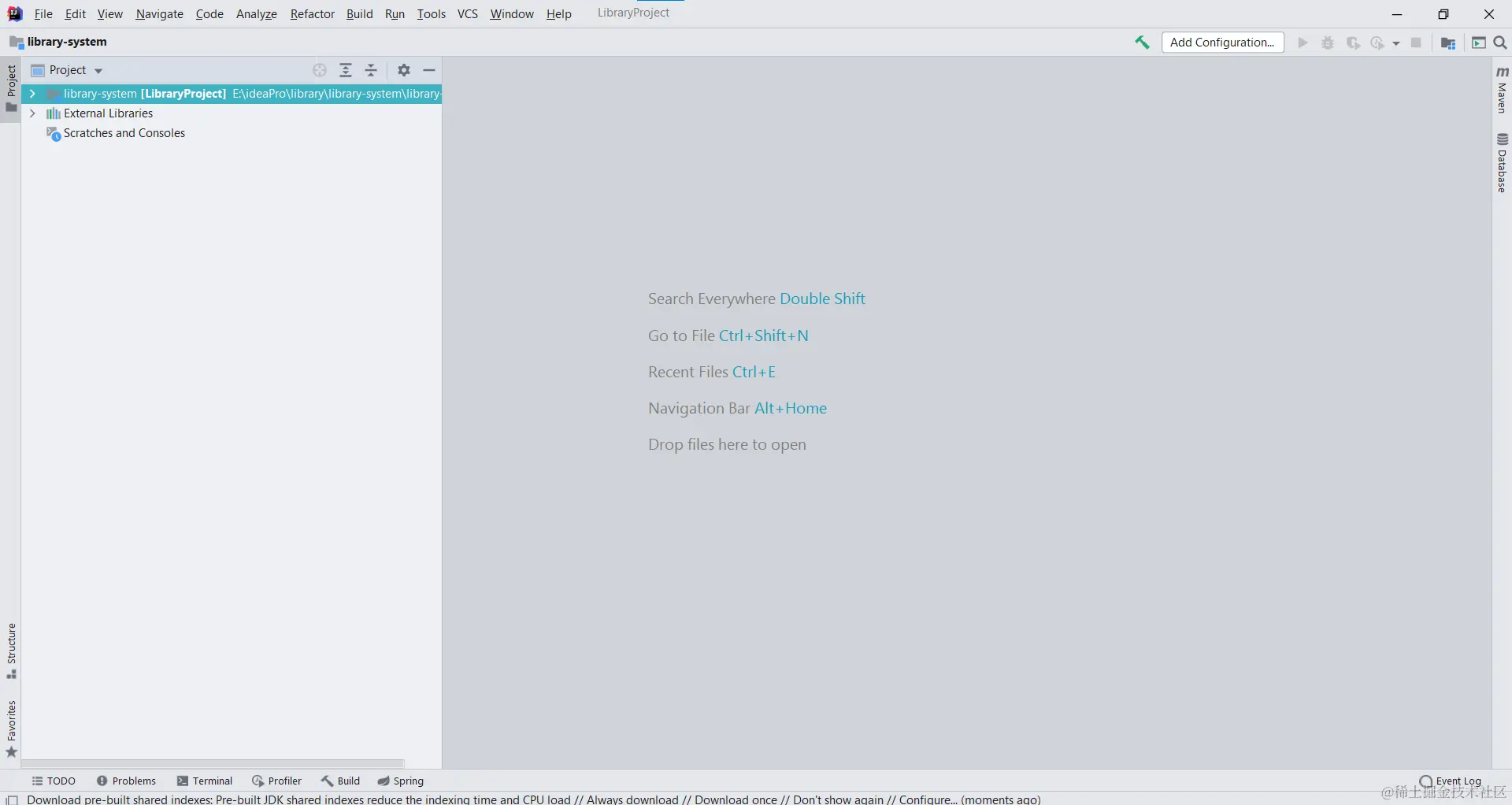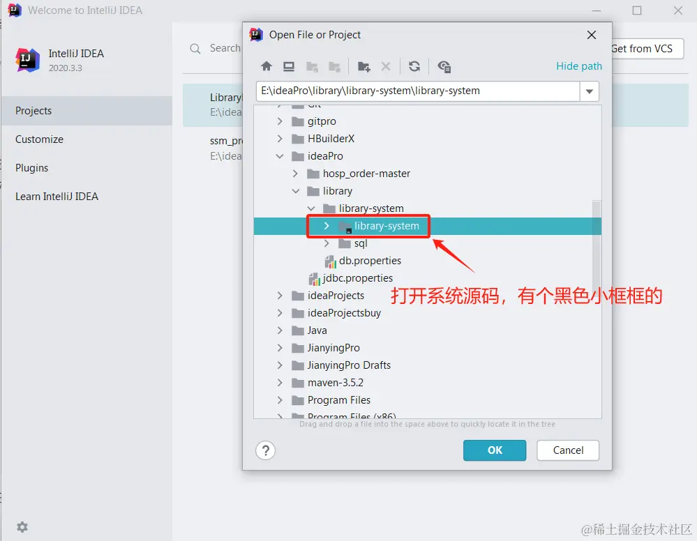 接下来咱们直接在idea里面打开library-system文件夹,注意:只到library-system文件夹,选择的时候会提示看到一个黑的框框如下所示:直接点击ok就行了。