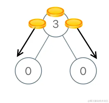 解释: 一枚硬币从根结点移动到左子结点,一枚硬币从根结点移动到右子结点。