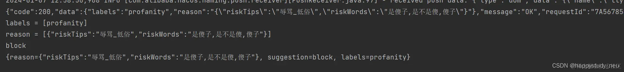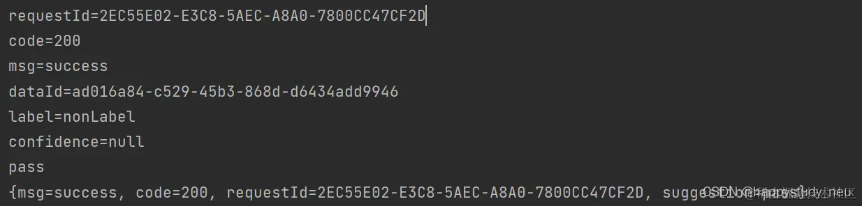 //传入文本,返回一个map,包含了文本的审核结果