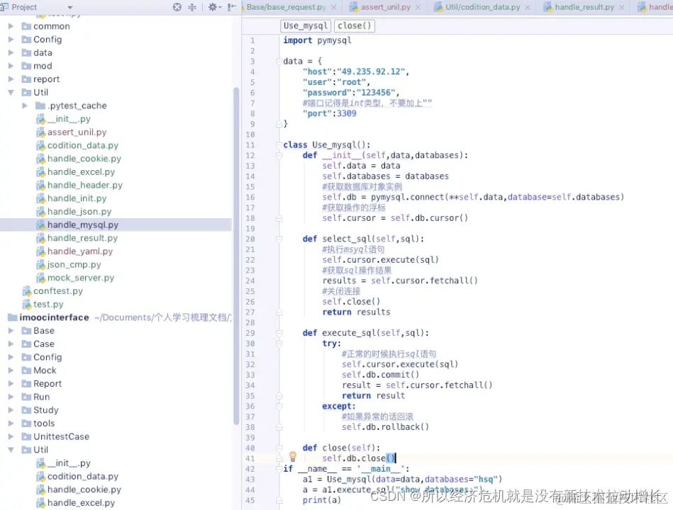 3、把python连接数据库的方法封装,应用到项目中