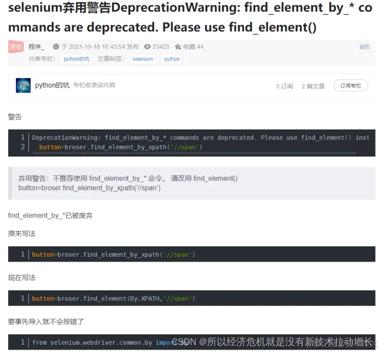 1、DeprecationWarning: find_element_by_name is deprecated. Please use find_element(by=By.NAME, value=name) instead