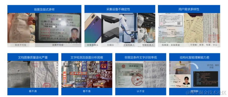 众所周知,2023年最火的便是CHAT GPT为代表的大规模语言模型,同时以GPT-4V和谷歌Gemini为代表的多模态大模型也非常受关注,并且取得了非常惊艳的效果。从微软对GPT-4V做的测评报告中可以看出GPT-4V在文档识别、图表识别这个领域的效果非常棒,特别是在认知和理解这个层面上,但文档领域的核心问题依然存在,如图像质量问题、文字识别问题、版面分析问题等。编辑