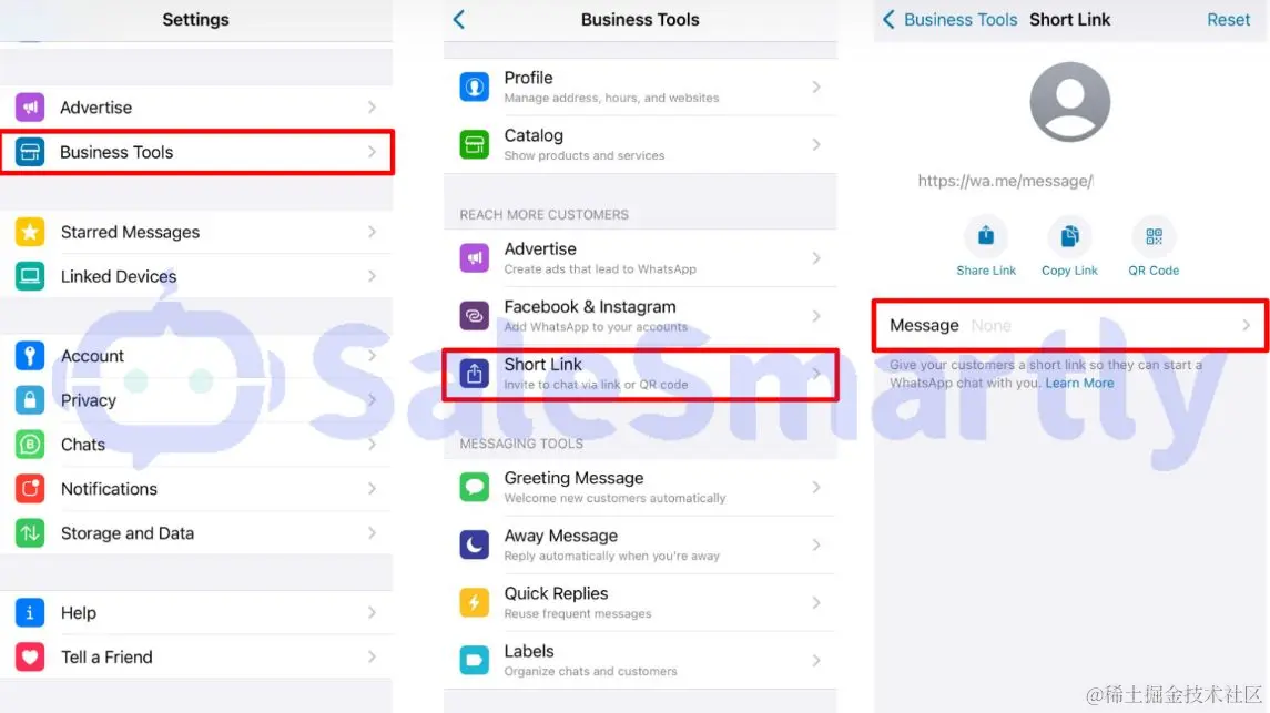 步骤如下:在【Business Tools】中找到【Short Link】,注意这个功能仅能用于WhatsApp Business账号。