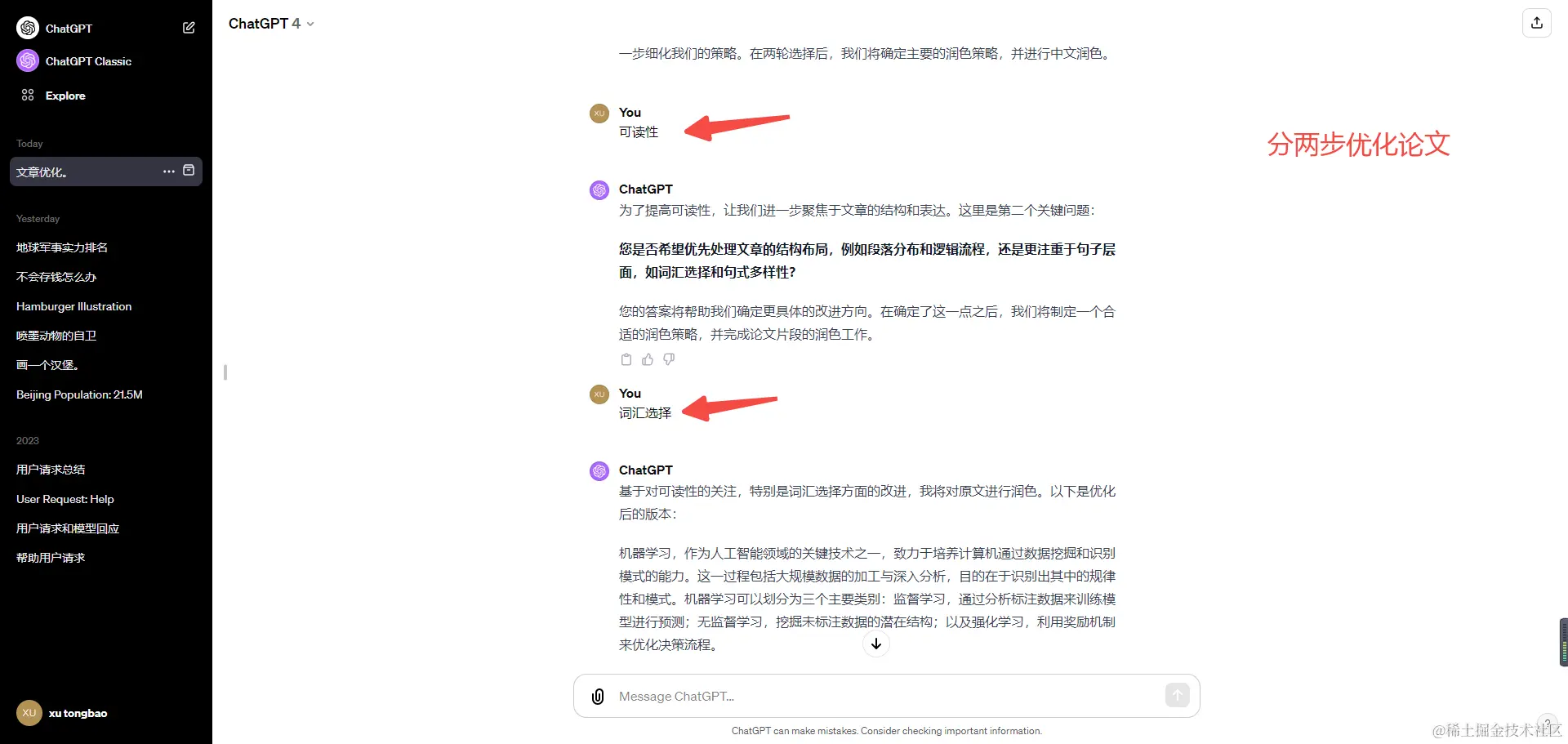 选择完这一步之后,就可以执行最终的润色命令。 这是因为我在提示词里面明确了「两步选择之后」,你完全可以根据自己的需要来进行灵活的调整。