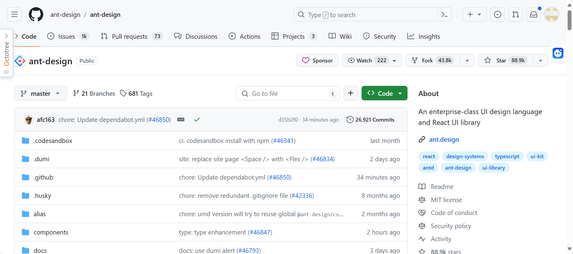 - 最近更新时间、提交数。这两个指标就表示这个项目的活跃度,假设一个项目两年都没有更新了,你还会敢去使用它吗?而这个提交数越多,就表示这个项目它的版本迭代次数越多,也能从一定程度上反映出这个项目的维护人员还是比较积极的。