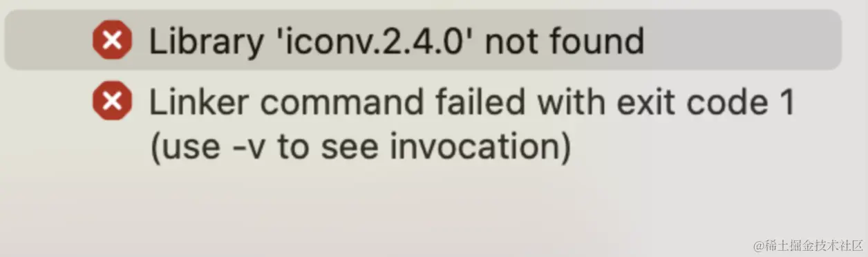 如果你在 Xcode 15 上运行发现如下所示错误,不要相信什么 other link flags add "-ld64" ,而是应该在 Build Phases > Link Binary With Libraries 下找到 iconv.2.4.0 ,然后删除它,然后添加 iconv.2,因为在 Xcode15 里,现在只有 iconv.2 。