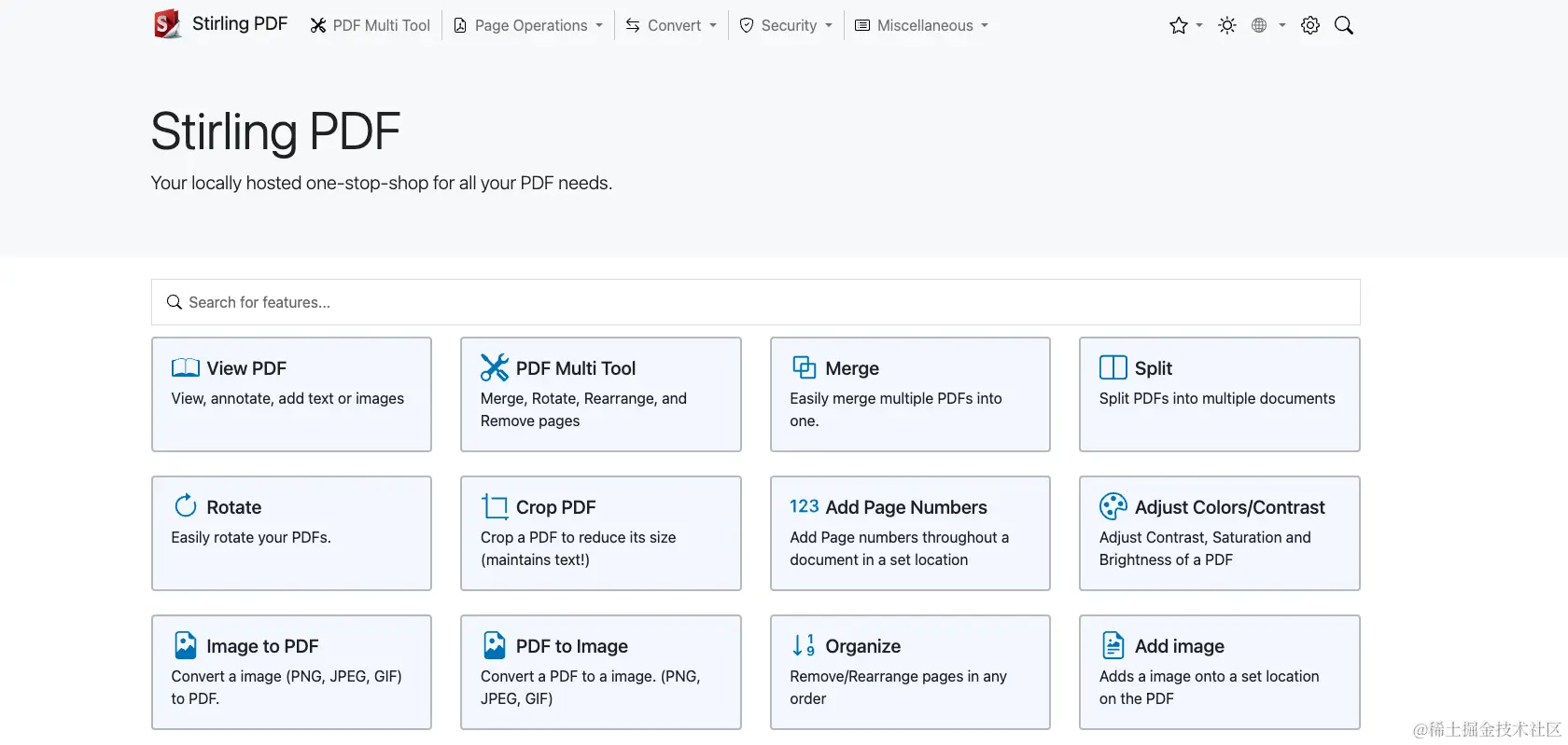 Stirling-PDF 是一个强大的本地托管基于 Web 的 PDF 操作工具,使用 docker,允许您对 PDF 文件执行各种操作,例如拆分合并、转换、重新组织、添加图像、旋转、压缩等。