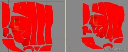 对对象进行碎片化。 由于这是一个对称网格,因此没有理由同时映射两侧。因此,在克隆网格之前,请删除头部的右侧。只需映射一侧并将其映射镜像到另一侧即可。