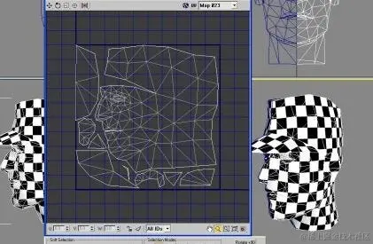 保存和加载映射。 接下来,取消隐藏原始模型并对其应用另一个 UNWRAP 修改器。单击“加载”,然后将克隆模型中的映射应用到最终网格上。单击“编辑映射”以检查映射是否正确加载。