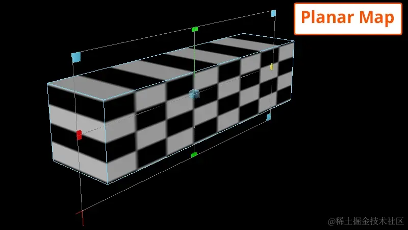 平面贴图通过平面将 UV 投影到网格上。此投影类型最适合相对平坦的对象。如果模型形式非常复杂,则平面投影可能会产生重叠且看起来失真的 UV。因此,平面图应该用于非常简单的形状。