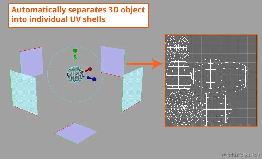 自动映射将对象分离到 UV 外壳中