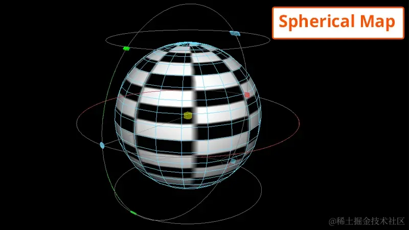 如果 3D 对象是球形的,则可以对其应用球面投影。这将创建基于缠绕在网格周围的球形的 UV。