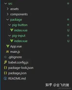 这里我们打算封装两个组件:pig-button、pig-input,所以在package文件夹下面分别新建了存放两个组件代码的文件夹。