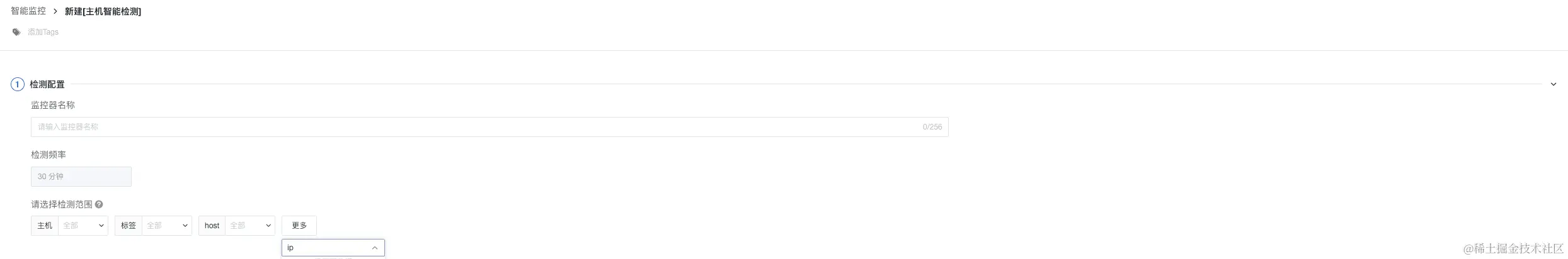 - 不同于传统形式的监控器需要配置复杂的阈值和触发规则,您只需要简单设置筛选数据的检测范围或自定义添加所需的属性字段作为筛选项,即可锁定更加精准的智能监控数据检测范围。