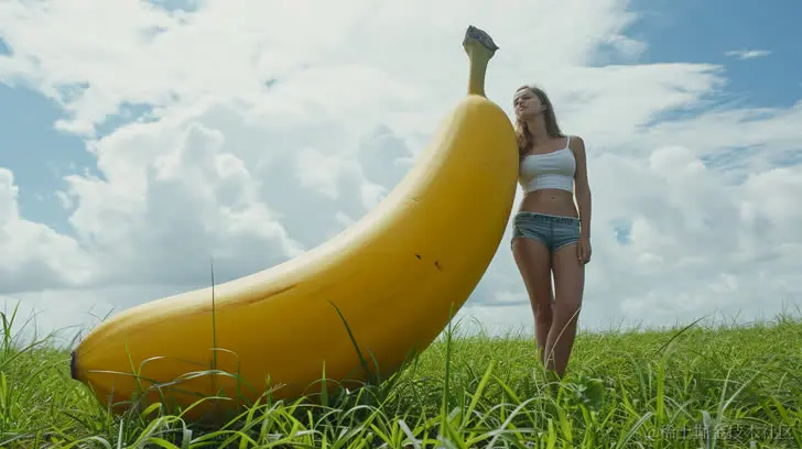 1. 女子站在一个巨大的黄色香蕉旁