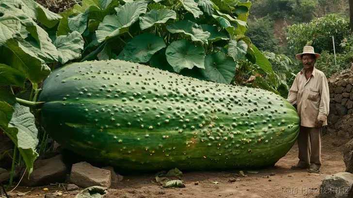 10. 男子站在一个仍在生长的大黄瓜旁